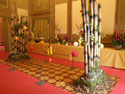 Inside the Falguera Palace -in its noble chambers like Vanos and Austria or in its Chapel-, we can find floral productions whose elements represent a situation, an image or a place centered on roses. In 2008, on the occasion of the 80th anniversary of the Sant Feliu’s exhibitions, the floral production covered the roses created in each decade, from the twenties until today, as well as a futuristic production that concluded the exhibition. To set up this, the Association Friends of the Rose collaborated with several flower shops.
